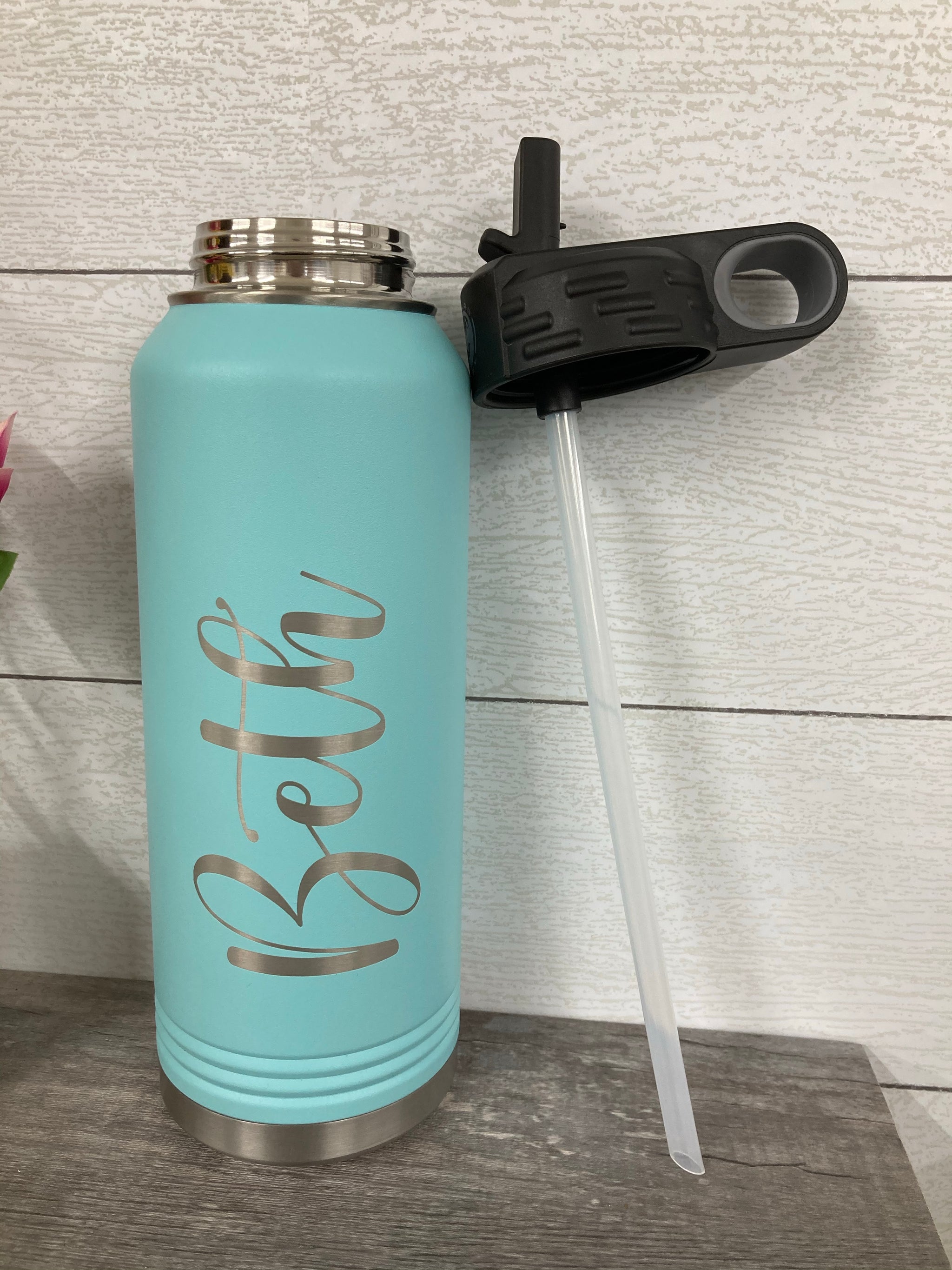 You will love our stainless steel engraved water bottles!  Bottles are double walled and vacuum insulated to keep your water cold for hours.  Comes with a flip top straw lid.  Choose your favorite color.