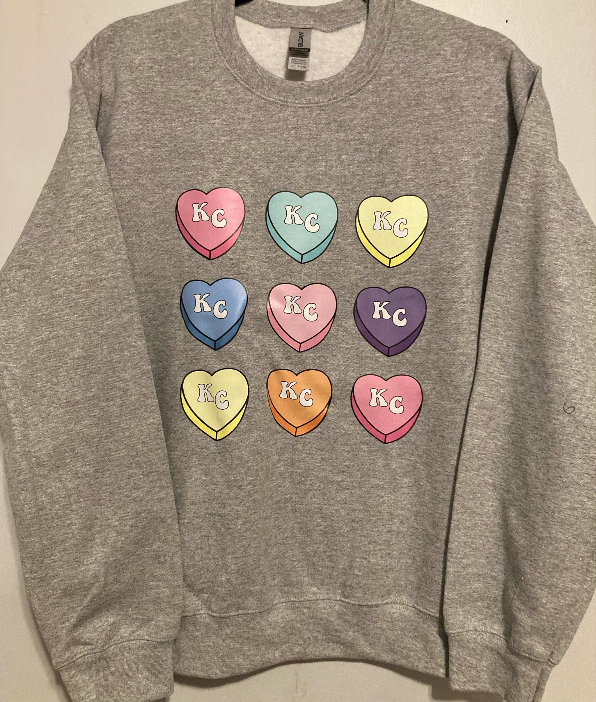 KC Candy Hearts Crew Sweatshirt. Perfect for Valentine’s Day!