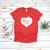 This soft and comfy heather red Bella Canvas brand tee features a Kansas City skyline heart graphic.