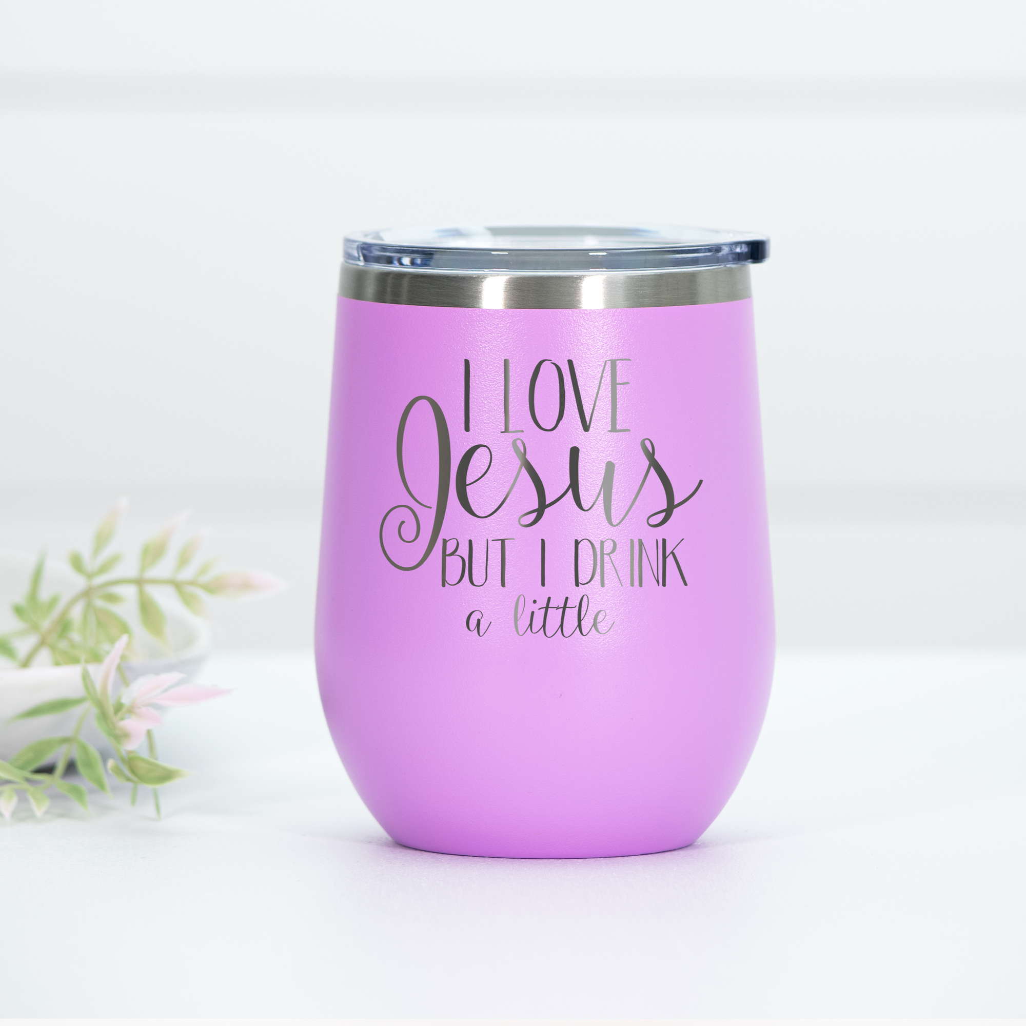 Love Jesus Drink A Little Engraved Wine Tumbler