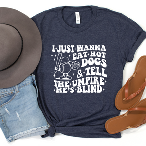 I Just Want to Eat Hot Dogs Tell Umpire He's Blind Tee