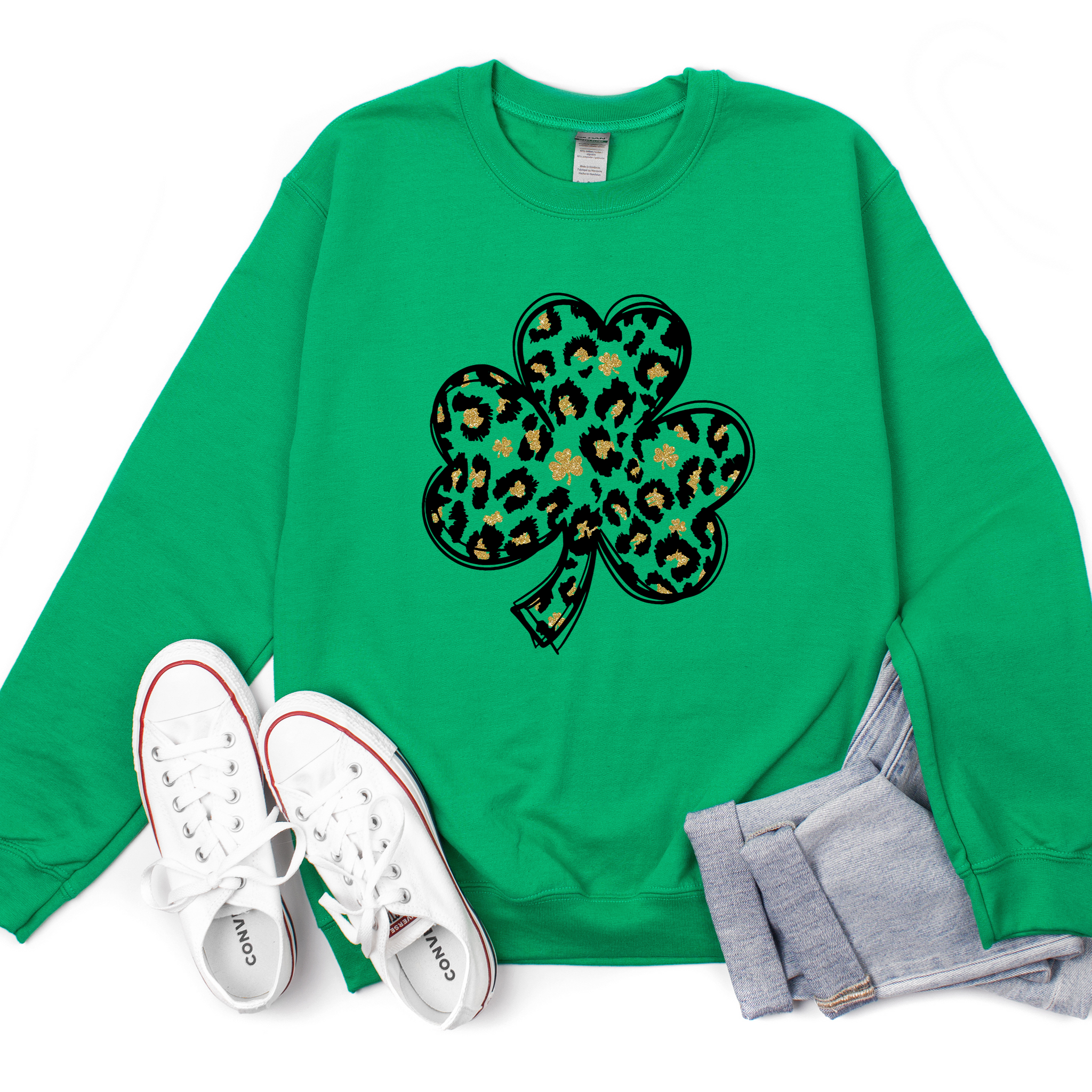Leopard Faux Gold Glitter Shamrock Tee OR Sweatshirt