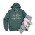 Stay cozy this winter with this heather forest sponge fleece sweatshirt with a fun Merry Christmas and doodle trees pattern in white.