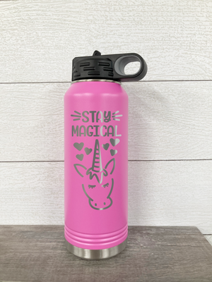 You will love our stainless steel engraved water bottles! Bottles are double walled and vacuum insulated to keep your water cold for hours. Comes with a flip top straw lid. Choose your favorite color.