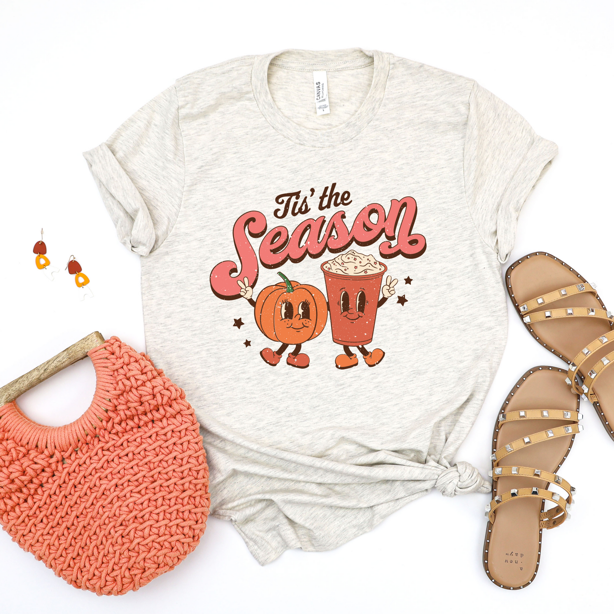 This soft and comfy Bella Canvas brand tee is perfect for fall's pumpkin spice lovers and features the phrase "Tis the Season" in full color.